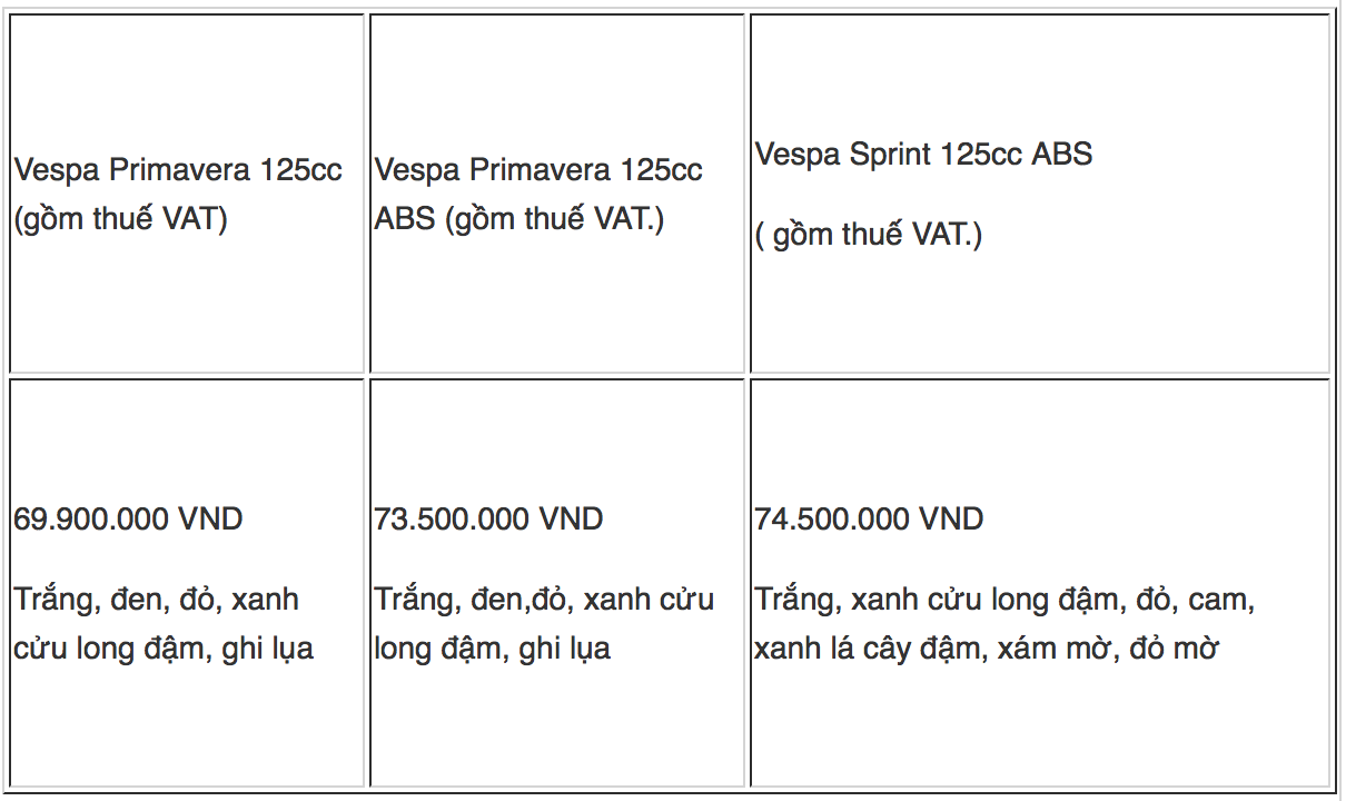 Với thiết kế đậm chất Ý và bảng màu sơn phú quý, Vespa luôn được coi là item mang tính bắt mắt, và là phụ kiện cá tính cho người đi xe. Kiến tạo của Vespa Primavera và Vespa Sprint kế thừa sự trang nhã tao nhã của siêu phẩm Vespa 946 cùng lúc không coi nhẹ tính thực tại và cảm giác dễ chịu của một chiếc xe tay ga với mục đích sử dụng hàng ngày. Hai dòng item Vespa Primavera 125cc và Vespa Sprint 125cc mới tích phù hợp phổ biến công nghệ như động cơ Piaggio iGet theo tiêu chuẩn Euro 3, hiệu suất hóa tối ưu, chi tiêu điều hành thấp, hoạt động êm ái. Được trang bị một loạt tính năng mới và chuỗi hệ thống chống bó phanh ABS đem đến cho đối tượng mua hàng những tiêu chuẩn cao hơn về bình an, hiệu suất và dễ ợt.